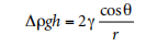 Where Δp is the difference in Density between the liquid and air, g is the gravitational constant, h is the height of the column, γ is the surface tension, θ is the contact angle, and r is the radius of the capillary. In practice, it is difficult to accurately measure the vertical contact angle and the known and uniform radius. To more accurately determine the surface tension, there are various ways to calculate the weight of the liquid above the meniscus.