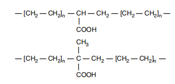 Figure 21.1 Structure of ethylene acrylic acid (top) and methacrylic acid (bottom) copolymers.