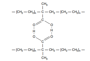 As shown in Figure 21.3, in acidic copolymers and ionomers, both melt and solid-state properties are strongly influenced by intramolecular hydrogen bonding. The forces involved in hydrogen bonding are almost 10 times greater than the intramolecular forces in nonpolar polyethylene.