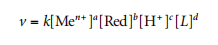 where k is the rate constant (constant value for a given type of system) and [L] is the concentration of free ligand (not bound to the metal ion in the complex). The exponents a and b are usually less than 1, where c is negative (using OH ion concentration in alkaline solutions, in which case the exponents are usually positive, O < c < 1). The exponent d is usually close to zero; however, when ligands are substituted, the deposition rate may change significantly. With constant concentrations of other solution components, the deposition rate decreases when the stability of the metal complex increases (as the concentration of free metal ions decreases); however, this relationship is not critical for the general case.