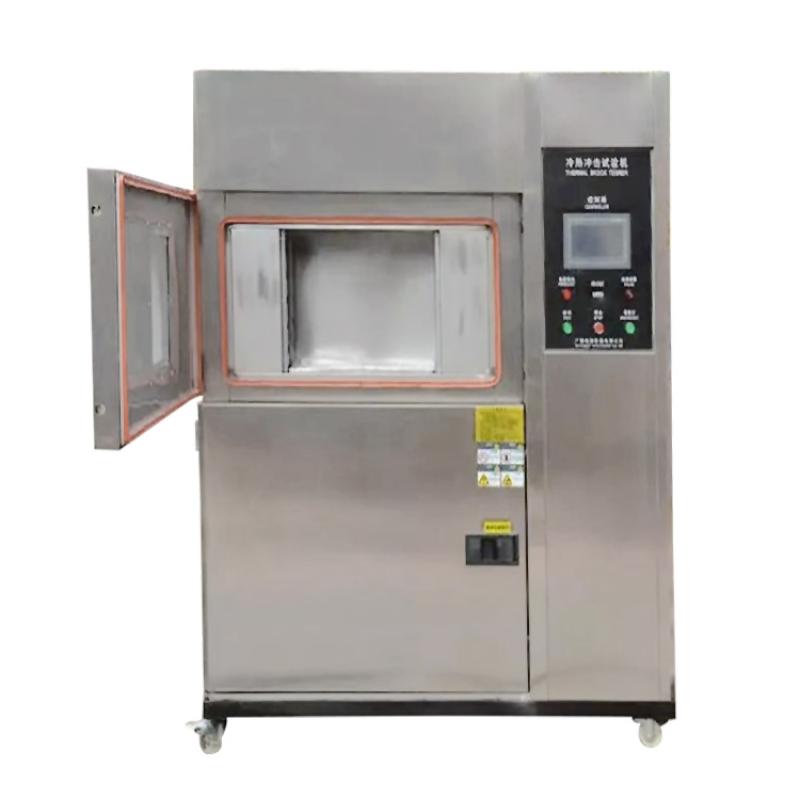The three-chamber thermal shock testing machine adopts a three-chamber structure. The sample is placed in the Test Chamber and fixed. At the beginning of the test, hot and cold air is blown into the Test Chamber through the opening and closing of the air. The air duct achieves the purpose of the temperature shock test.