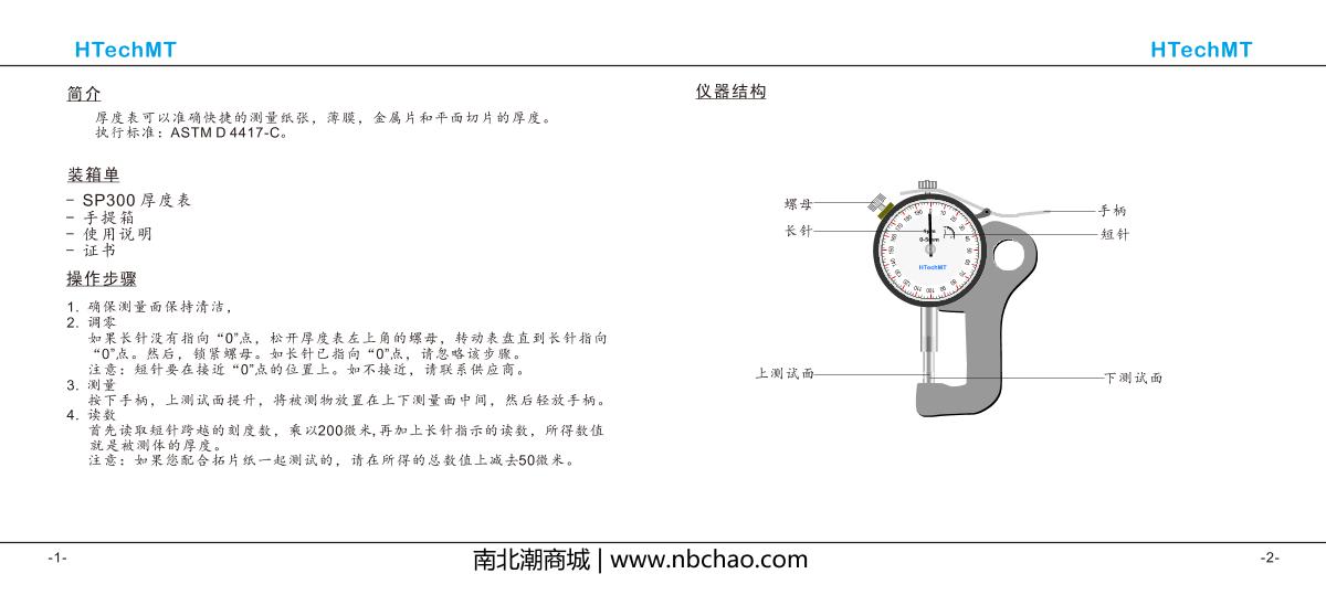 - 4LiuLing CH-1-S Plastic film sheet hand thickness gauge Manual