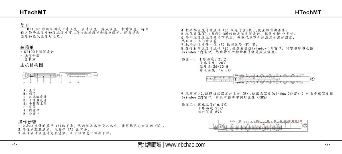 HTechMT CT100 Hand Humidity Meter Manual,OI