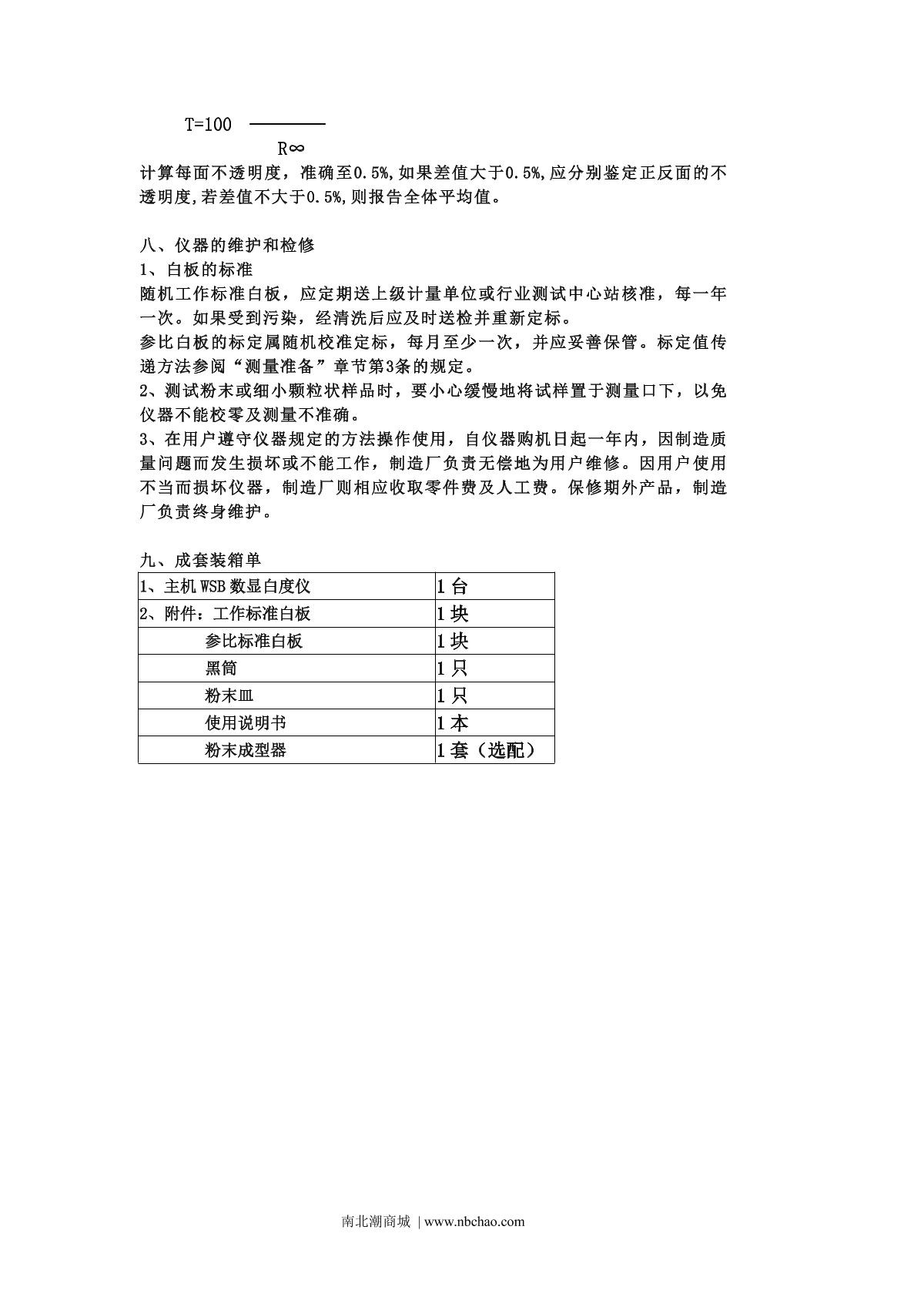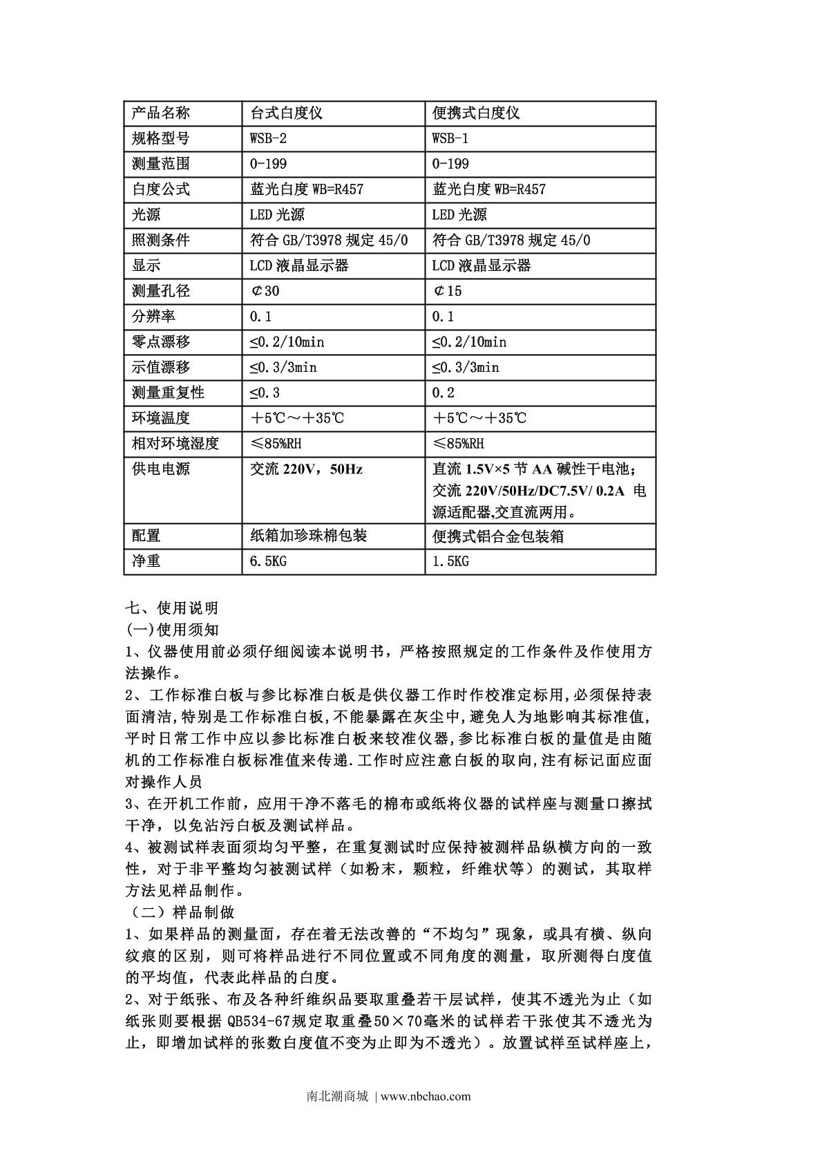 QiWei WSB-2 Whiteness Meter Manual,OI