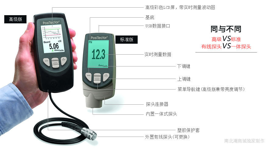 1. Standard Positector 6000 seriesimportCoating Thickness Gauge: Monochrome display (old) Color LCD display (new) with a storage capacity of 250 readings that can be browsed and downloaded.