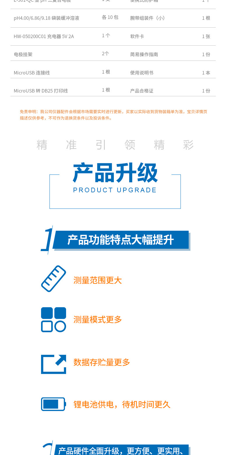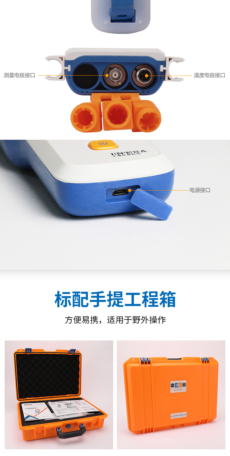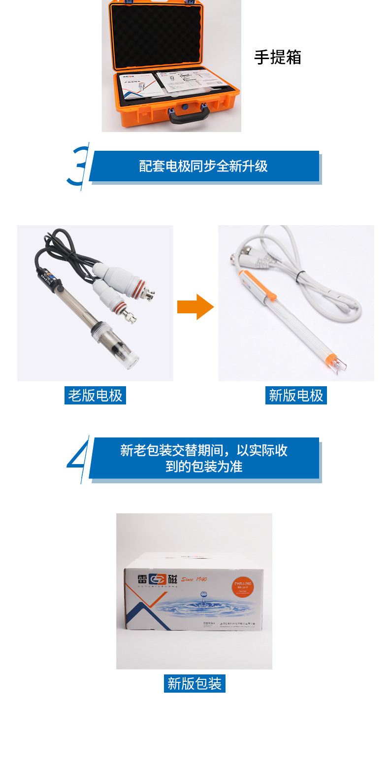 â Comes standard with three-composite pH electrode, electrode hanger, silicone protective cover, wrist strap, portable suitcase, and calibration buffer solution