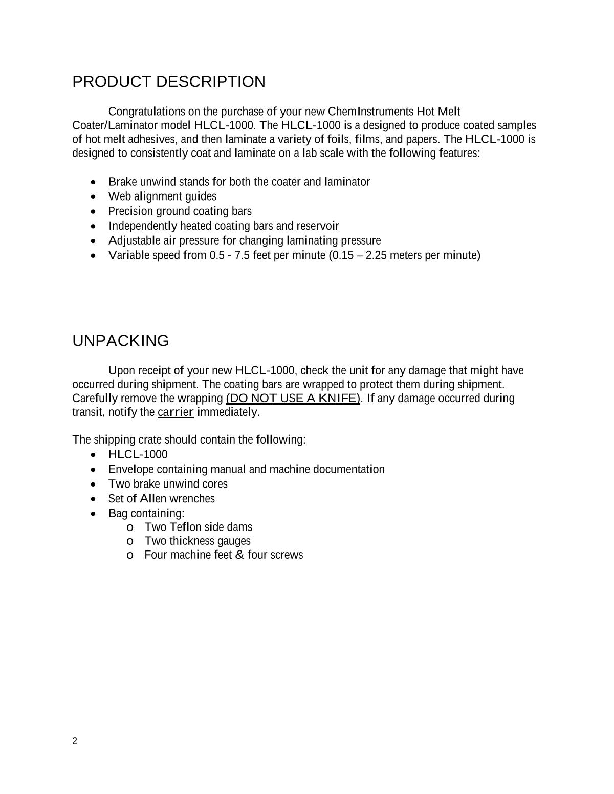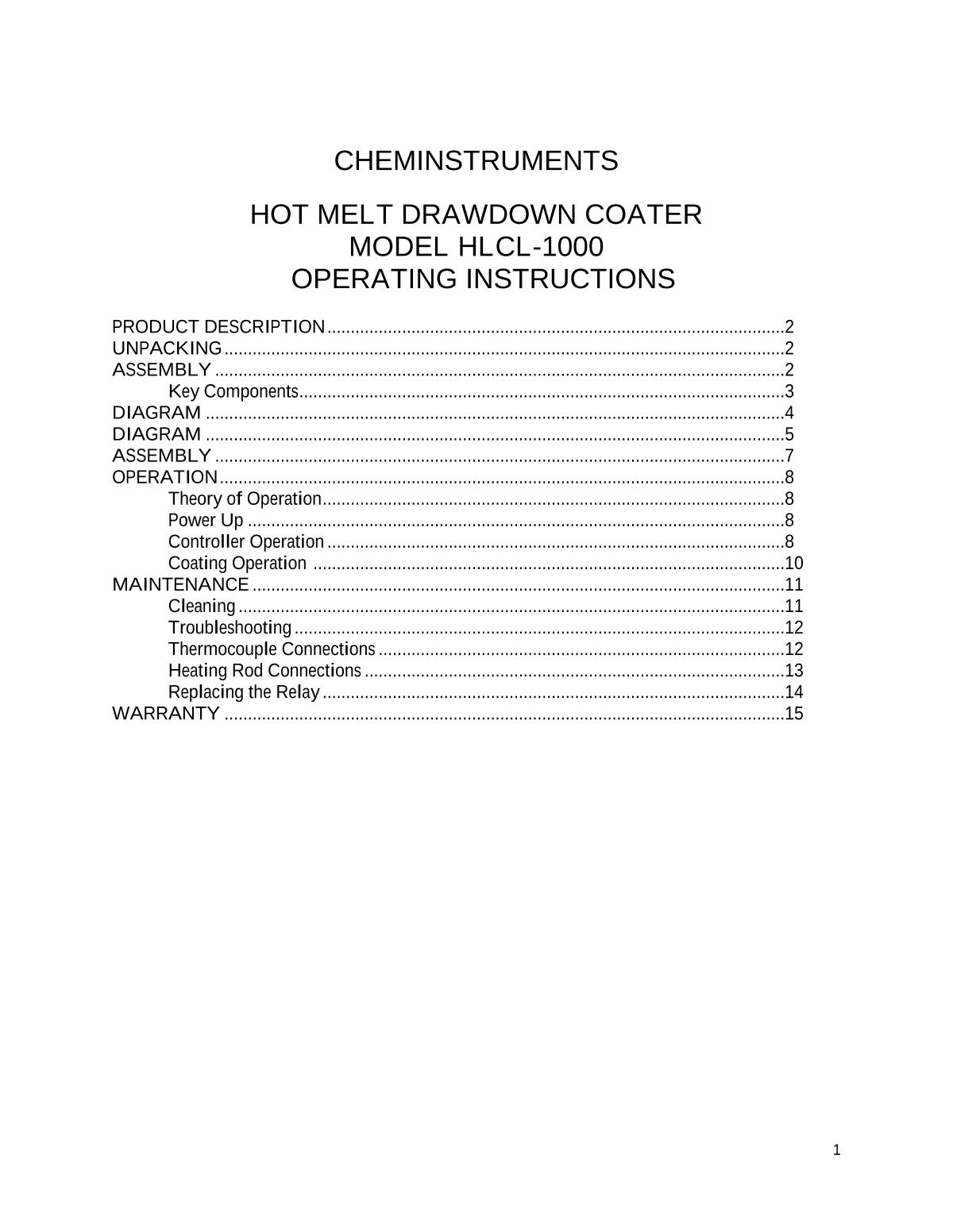 chemInstruments HLCI1000 Laboratory hot-melt adhesive coater Manual,OI