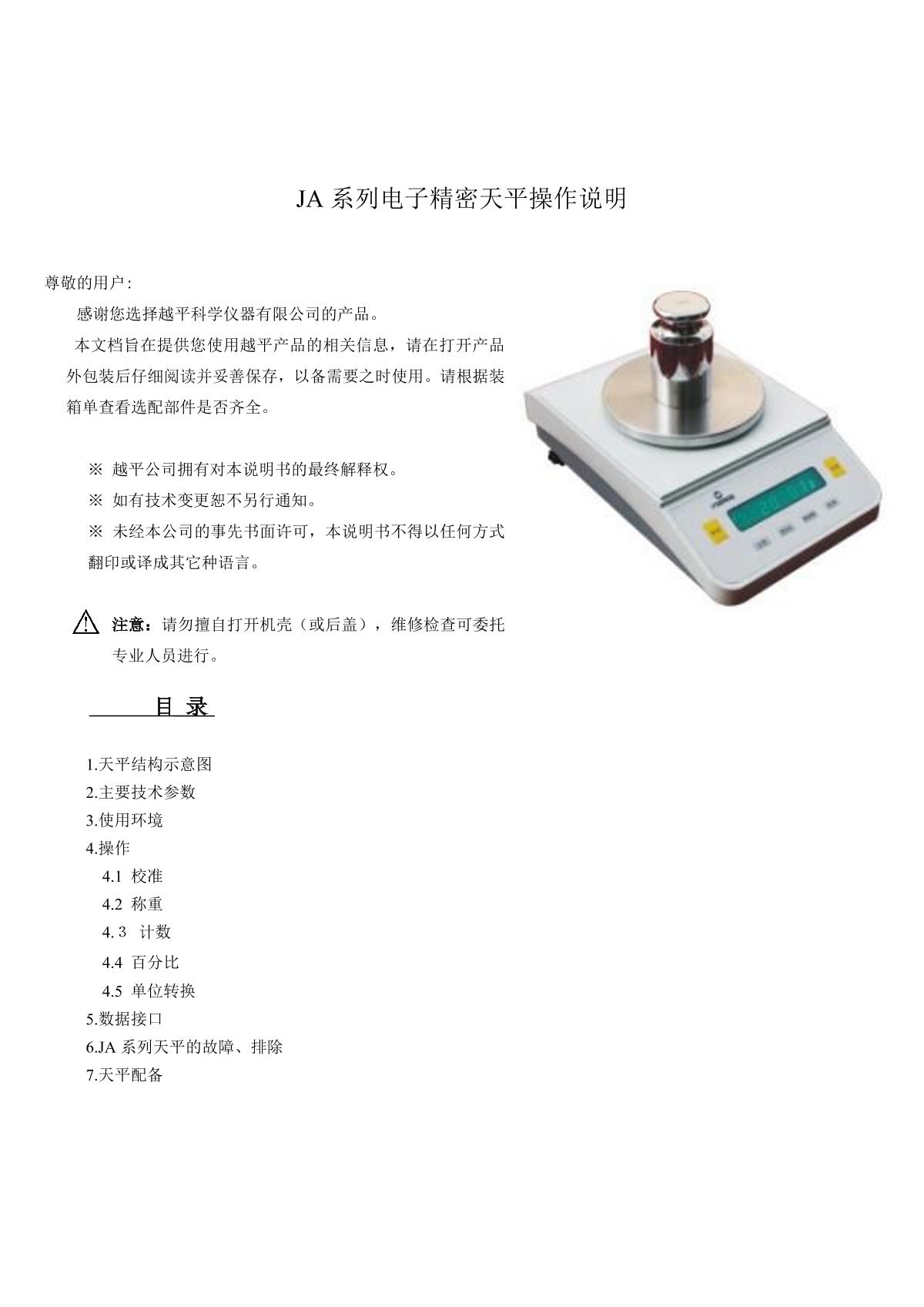 YuePing JA1003B Electronic Precision Balance Manual,OI