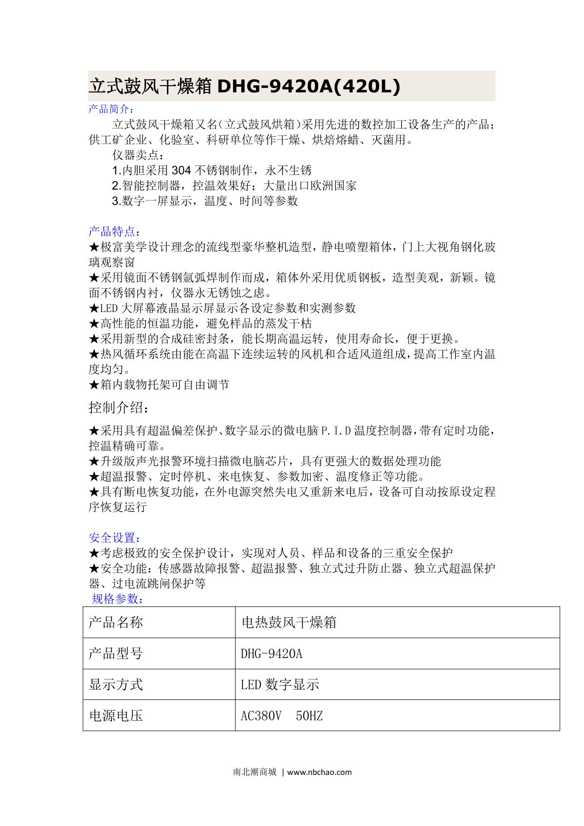 JieCheng DHG-9420A Type I vertical Forced Air Drying Oven brochure
