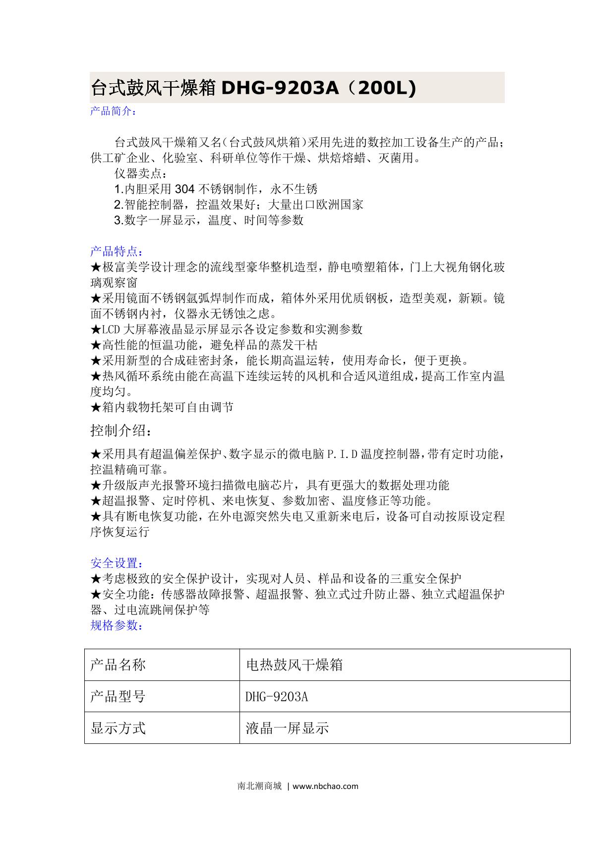 - 2sanfa DHG-9203J Precision thermostatic Drying Oven brochure