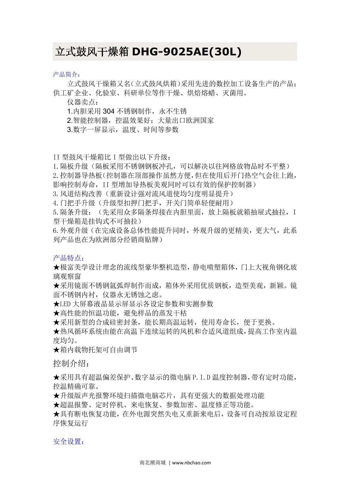 JieCheng DHG-9025AE Type II vertical Forced Air Drying Oven brochure