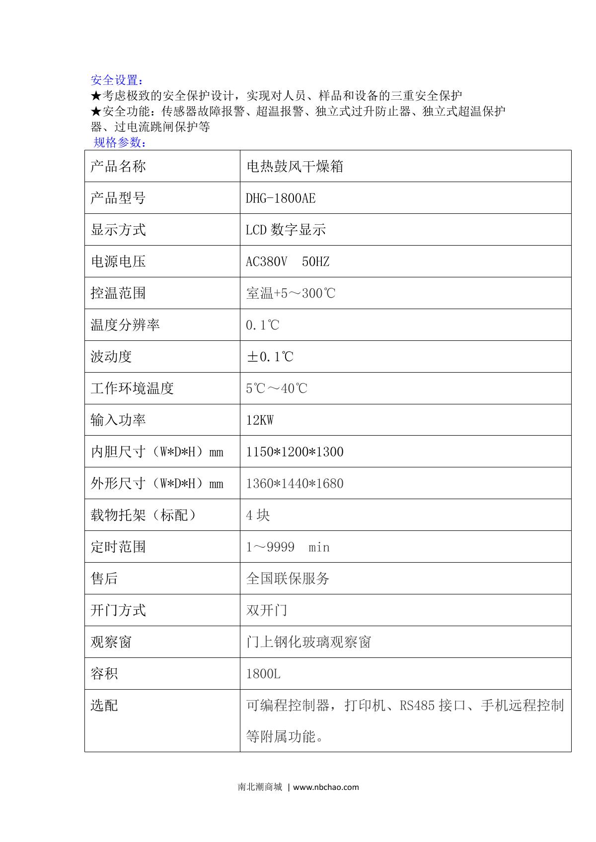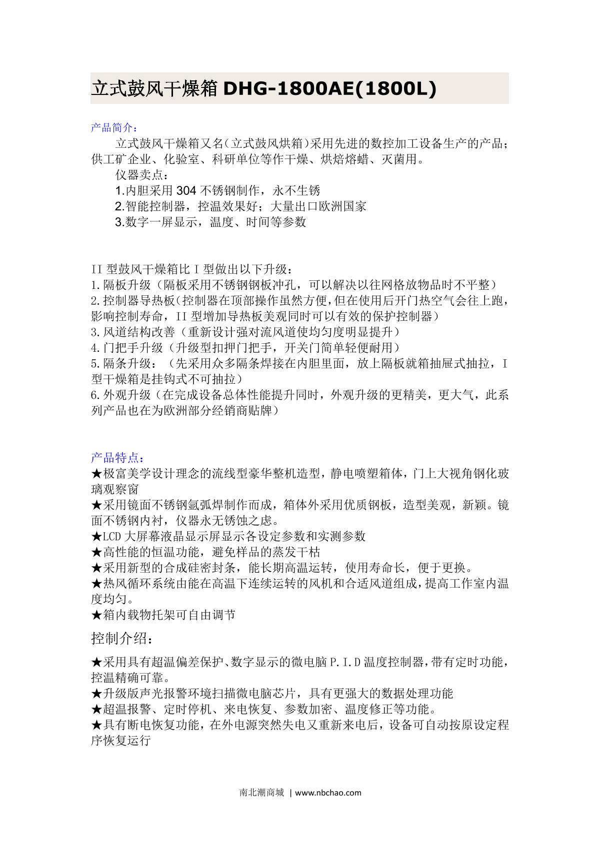 JieCheng DHG-1800AE Type II vertical Forced Air Drying Oven brochure