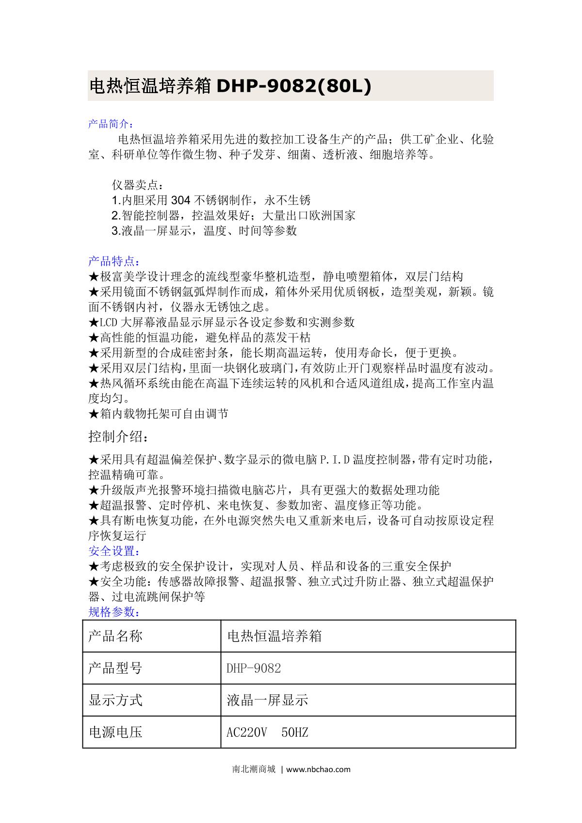 JieCheng DHP-9082 Electrothermal Thermostatic Incubator brochure