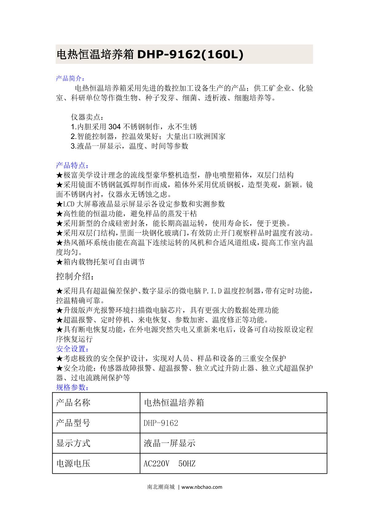 JieCheng DHP-9162 Electrothermal Thermostatic Incubator brochure