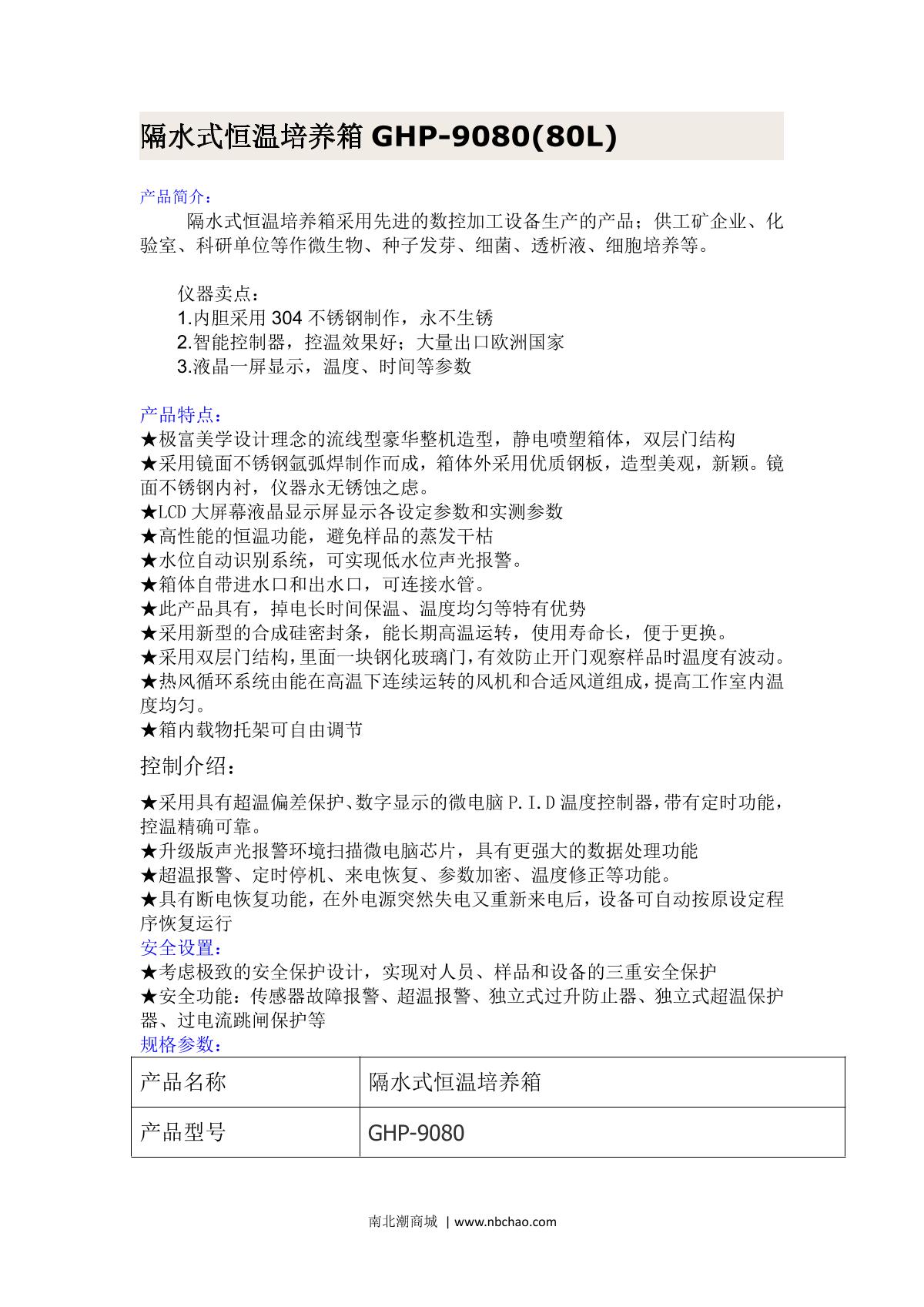 JieCheng GHP-9080 Waterproof Incubator brochure