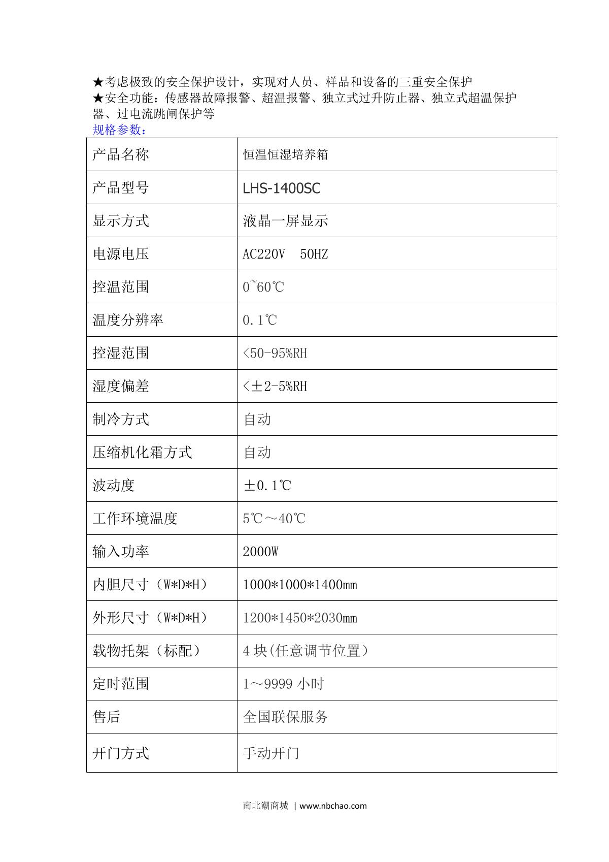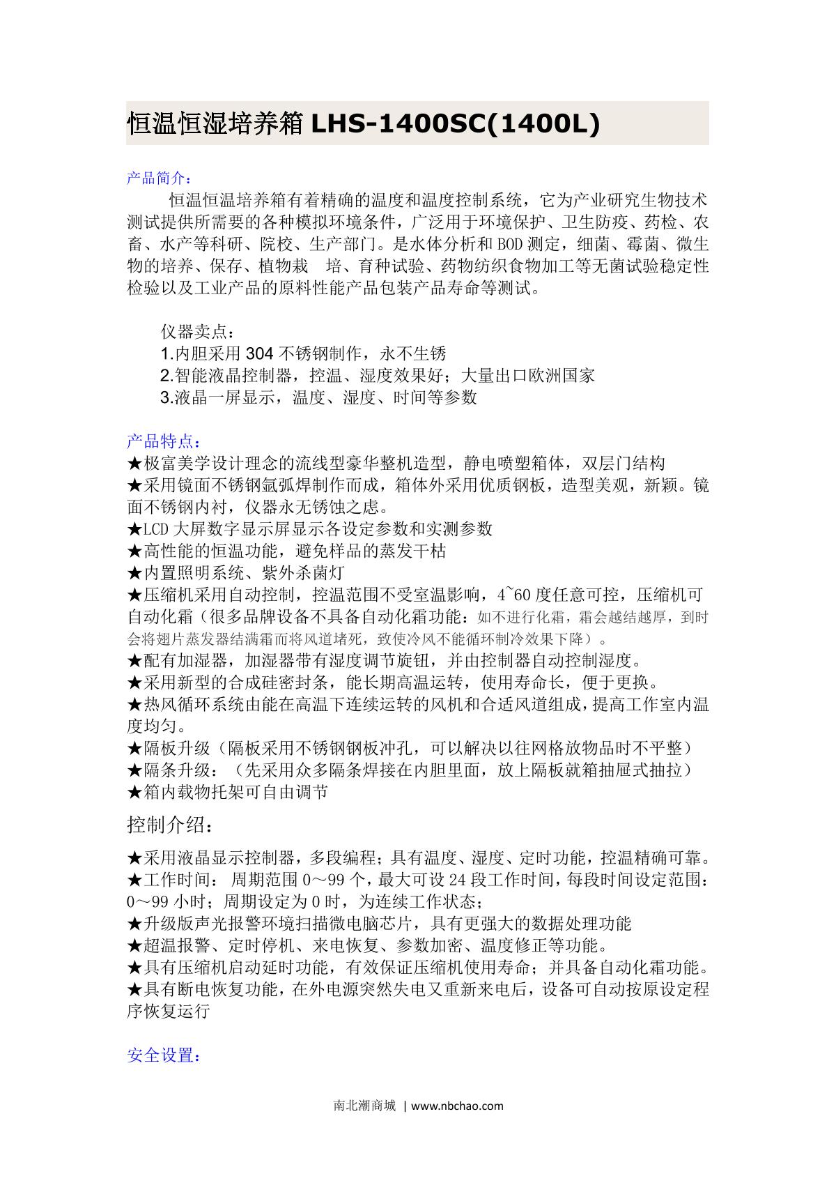 JieCheng LHS-1400SC Constant Temperature and Humidity Incubator brochure