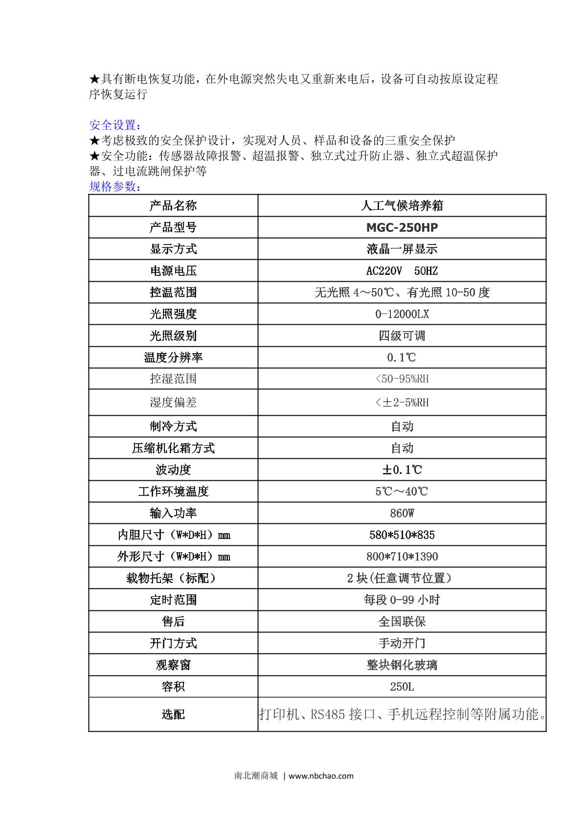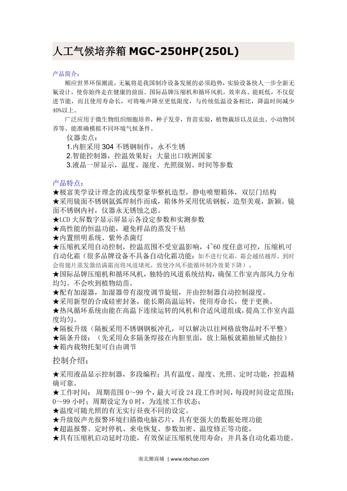 JieCheng MGC-250HP Artificial climate Incubator brochure
