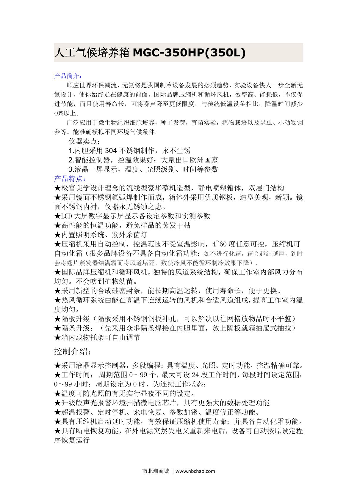 - 9YiHeng MGC-350HP-2 Artificial Climate Chamber brochure