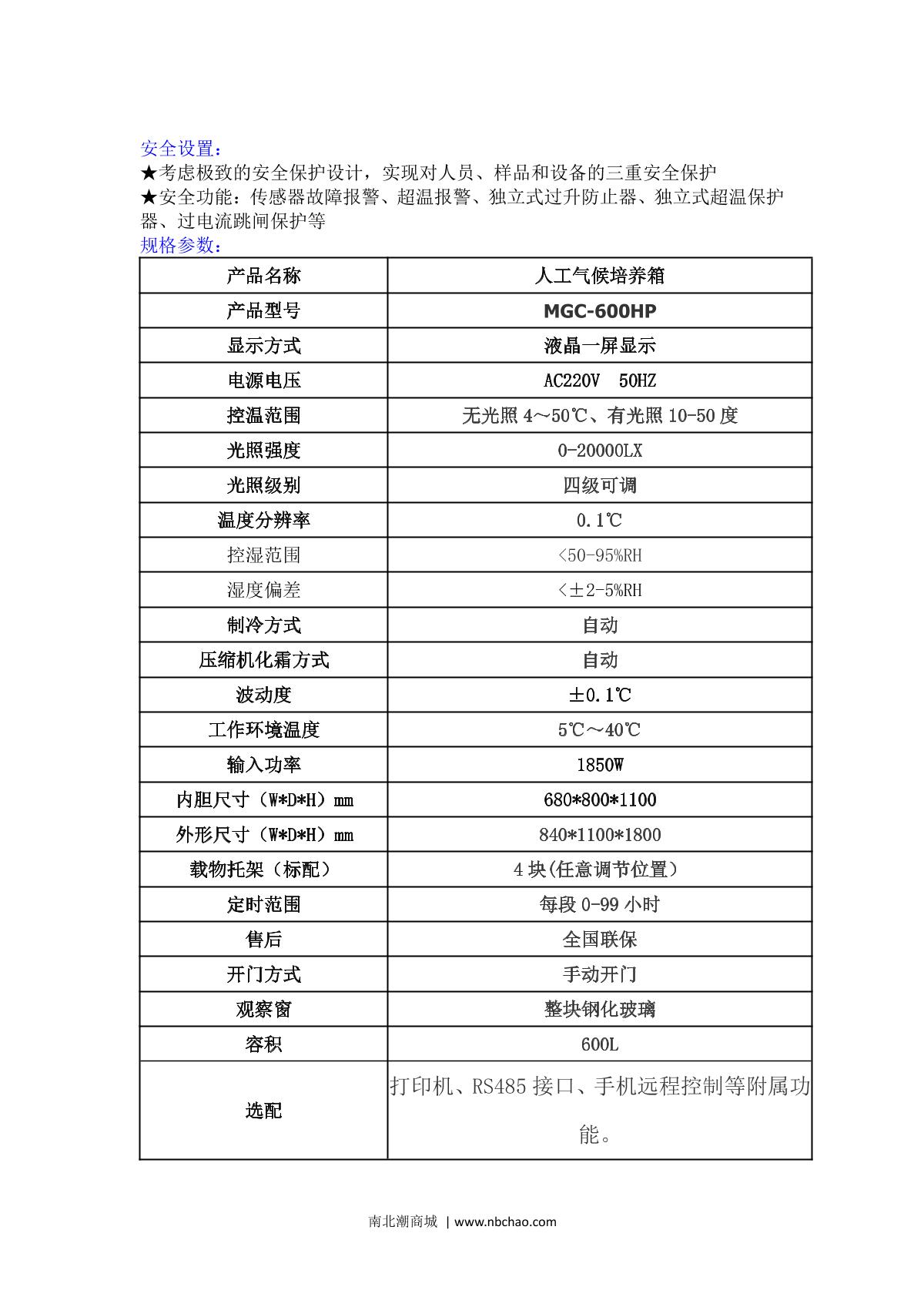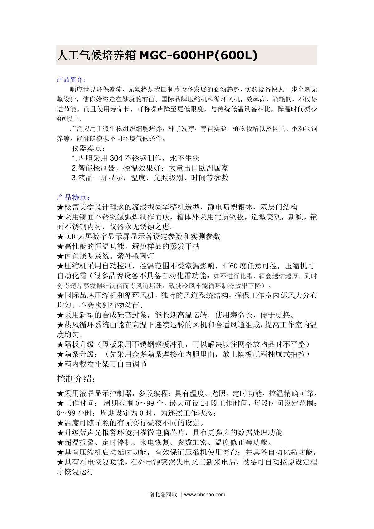 JieCheng MGC-600HP Artificial climate Incubator brochure