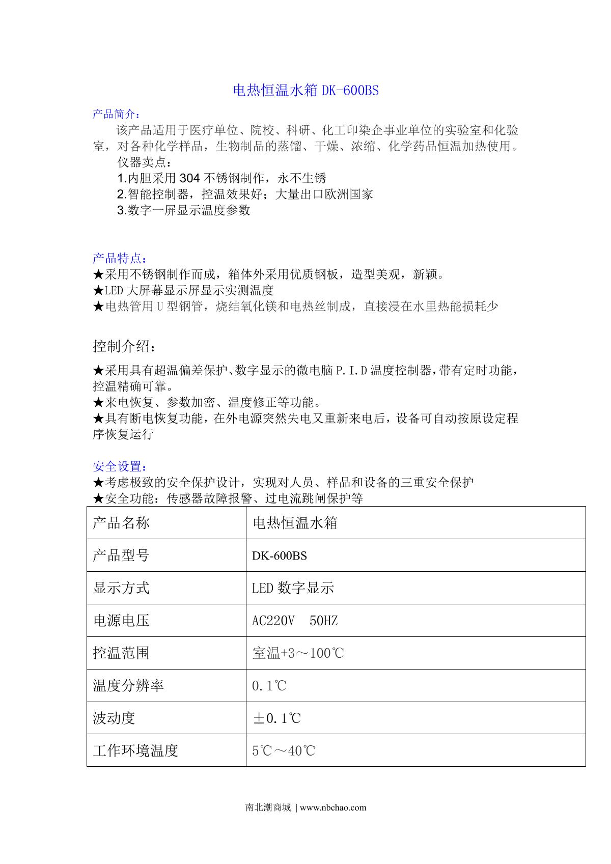 JieCheng DK-600BS Digital Thermostatic Water Bath brochure