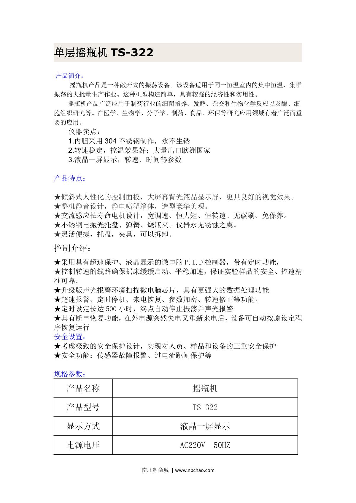JieCheng TS-322 (amplitude 35mm) Single layer shaker brochure