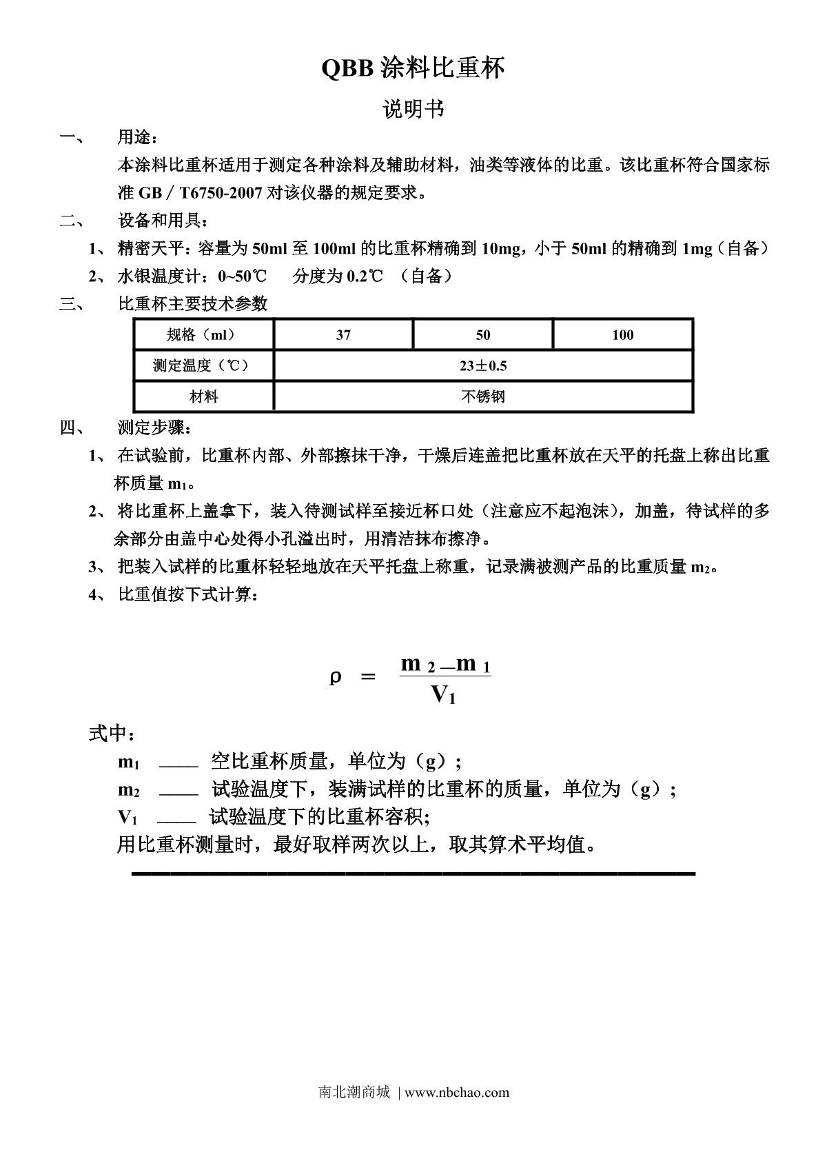 - 3SHIBO QBB-50 Coating Specific Gravity Cups Manual