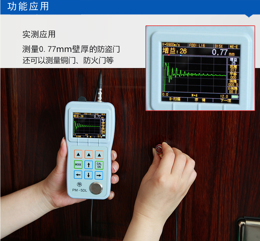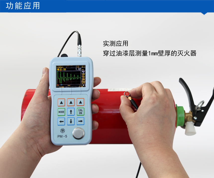 PM-5 high-precision Thickness Gauge high-precision type, resolution 0.001mm, the thinnest can measure 0.2mm thickness of the workpiece. It is very suitable for automobile body steel plate, fire/security door, copper door/door plate, fire extinguisher, office cabinet, metal staircase handrail, cooking utensils and other thin-walled materials thickness measurement.