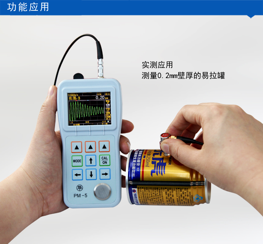 PM-5 high-precision Thickness Gauge high-precision type, resolution 0.001mm, the thinnest can measure 0.2mm thickness of workpieces, very suitable for automotive body steel plates, fire/security doors, copper doors/door panels, fire extinguishers, office roll cabinets, metal stair handrails, cooking utensils and other thin-walled materials thickness measurement.