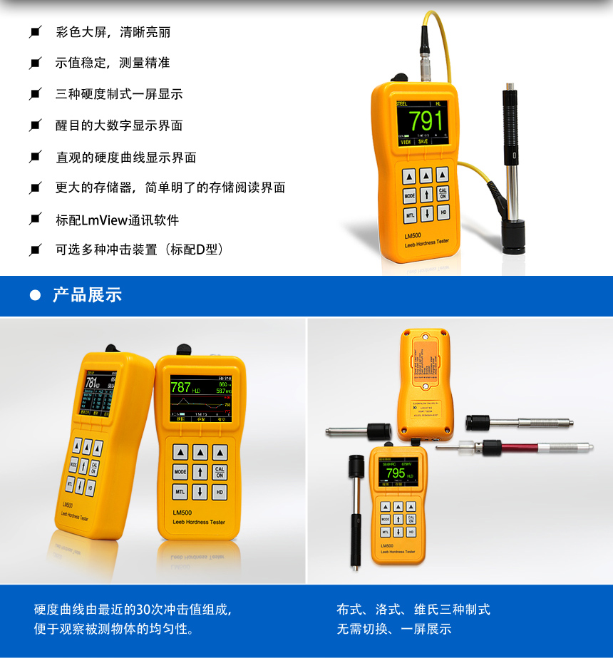 It is suitable for failure analysis of installed mechanical or long-term tissue parts, abrasive cavities, heavy workpieces, pressure vessels, other equipment of automobile generator set machines, narrow test areas, production lines of bearings and other parts, material differentiation of metal material warehouses and on-site hardness testing of large workpieces, and batch testing of workpieces on the production line. It is also widely used in metal manufacturing, transportation, power plants, petrochemicals, aviation, construction and laboratories.