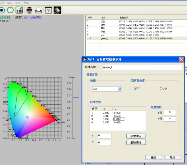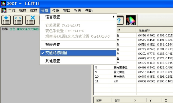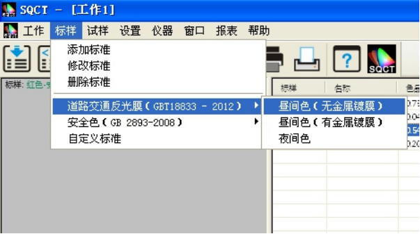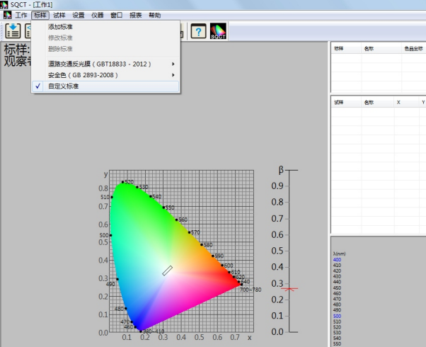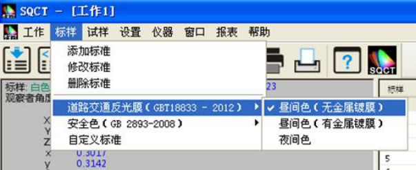 For the standard GB/T 18833, which is widely used in domestic (CN) traffic road signs, the SQCT software incorporates the standard color gamut in the standard, and customers only need to choose according to their own needs.