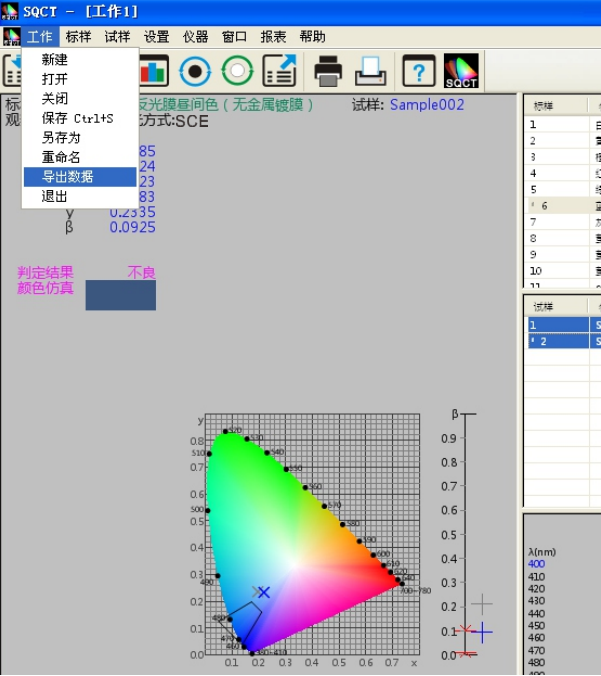 SQCT directly puts the polygonal color area of "GB/T 18833-2012 Road Traffic Reflective Film Sample" into the software, and can be selected directly from the menu, "Standard Sample-> Road Traffic Reflective Film GB/T 18833-> Daytime Color (No Metal Coating)" is shown in Figure 11.