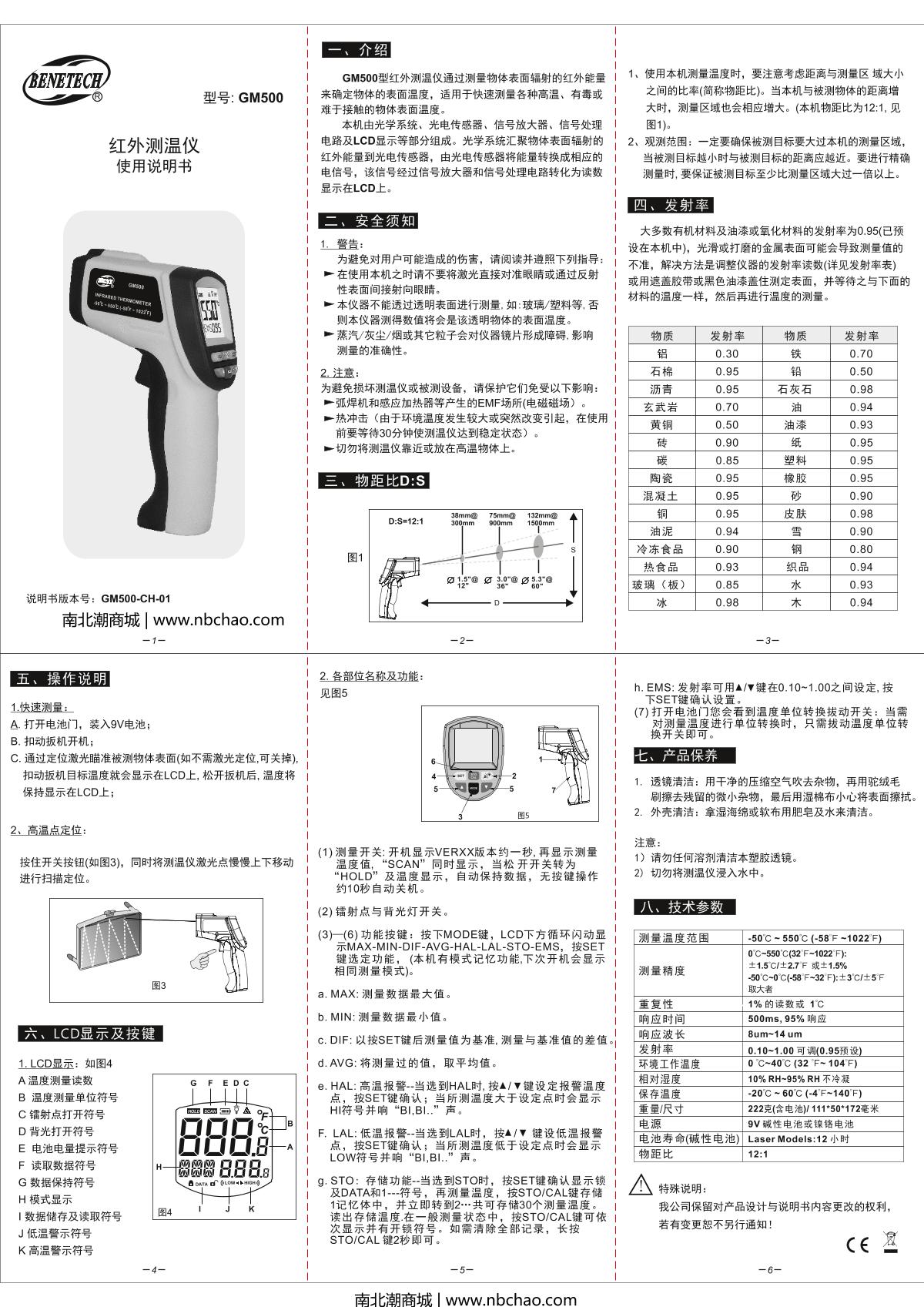 BENETECH GM500 Infrared Thermometer Manual,OI