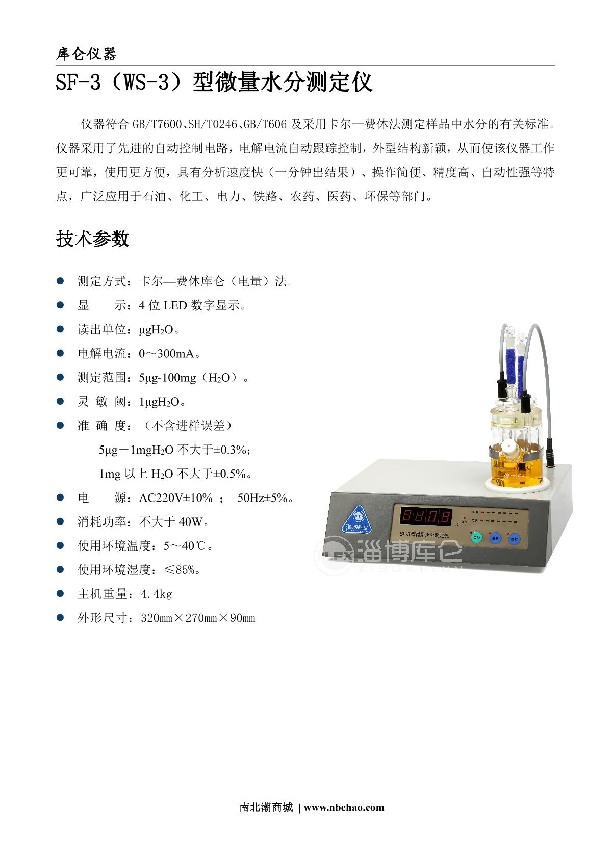Zibo Coulomb SF-3 Trace Moisture Meter, Carl Moisture Meter 5μg~ 100mgKarl-Fischer coulomb method4-Digit LED digital displayμgH2O¥8280.0SE -