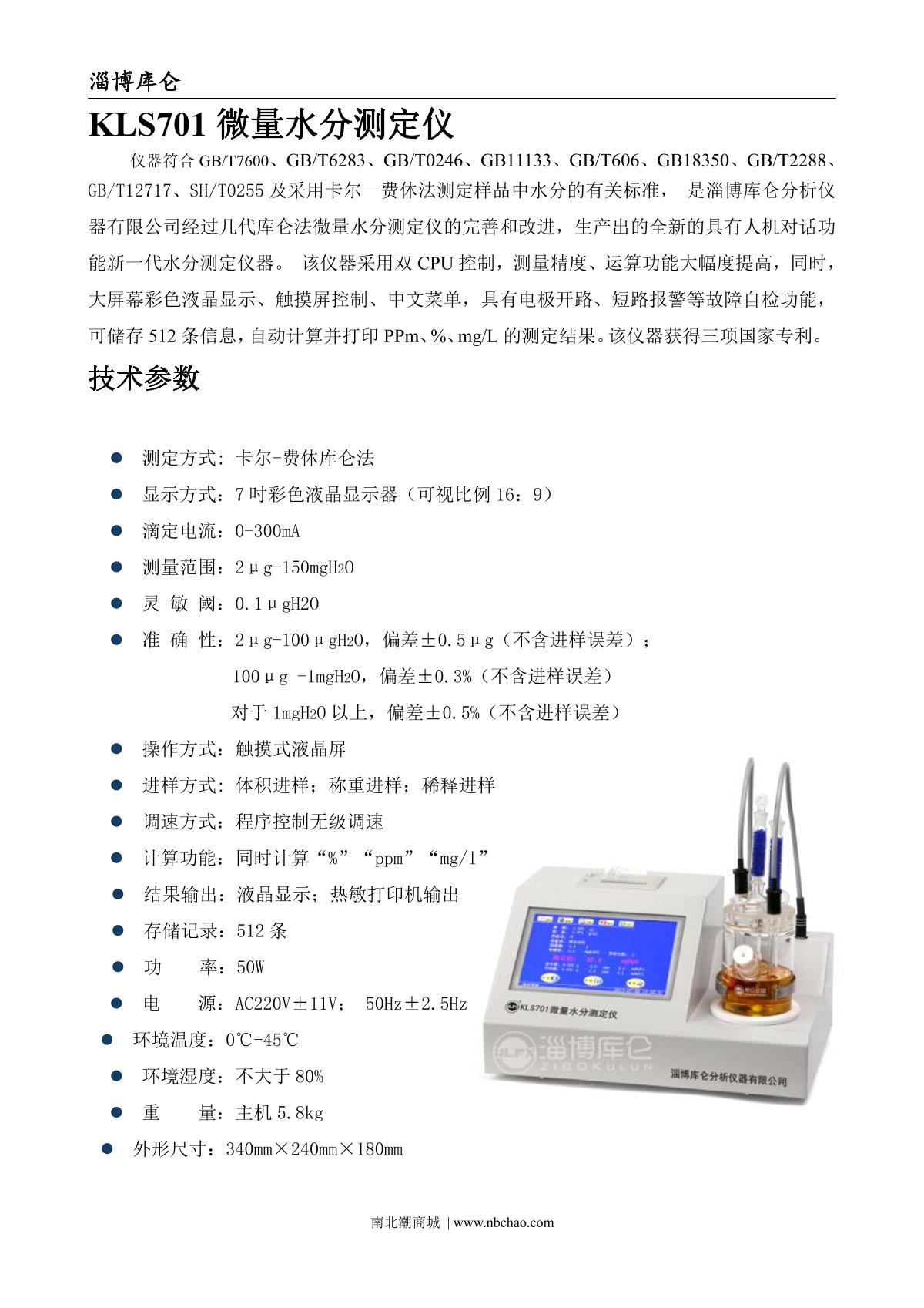 zibo KLS701 Micro Moisture Analyzer brochure