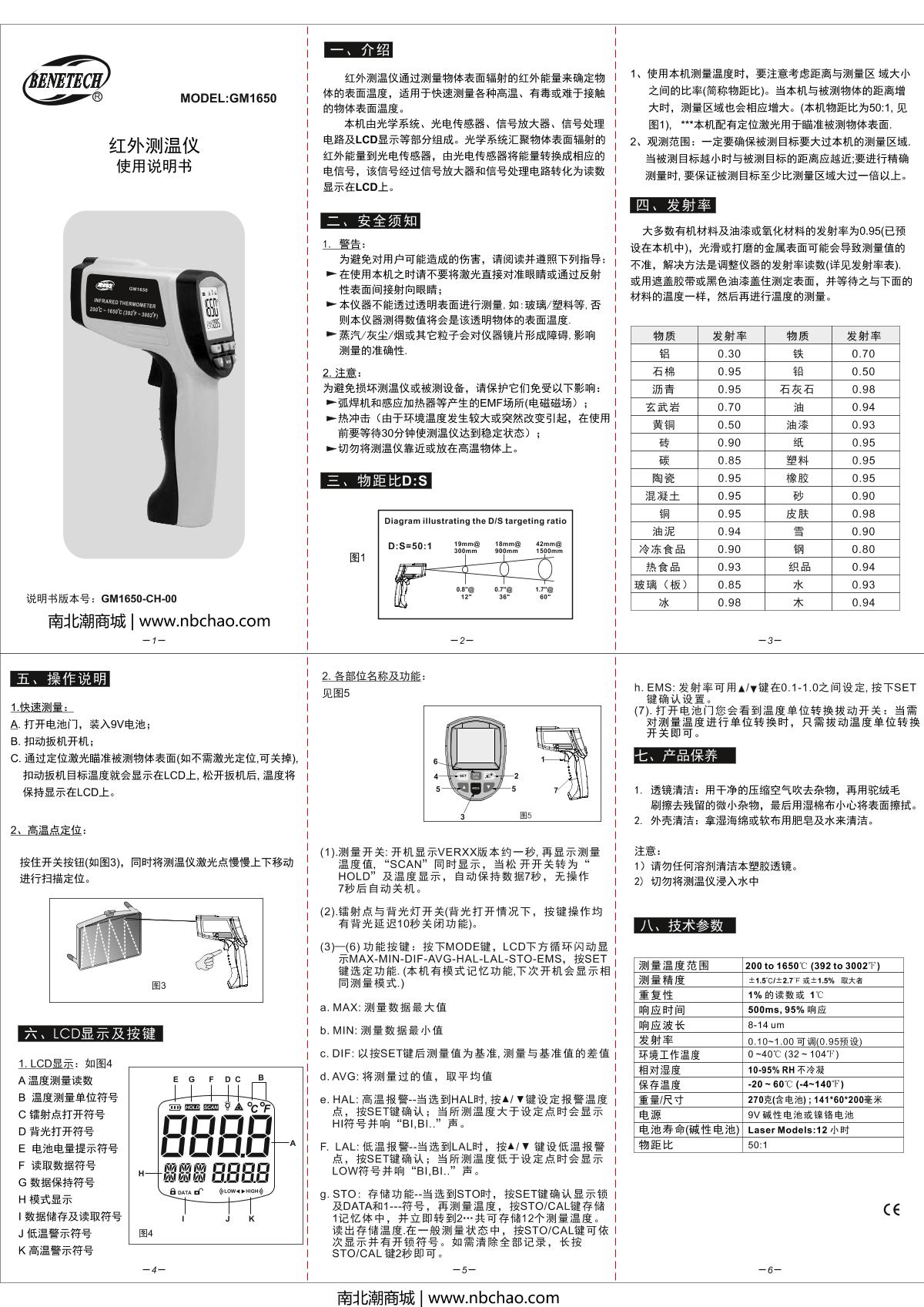 BENETECH GM1650 Infrared Thermometer Manual,OI