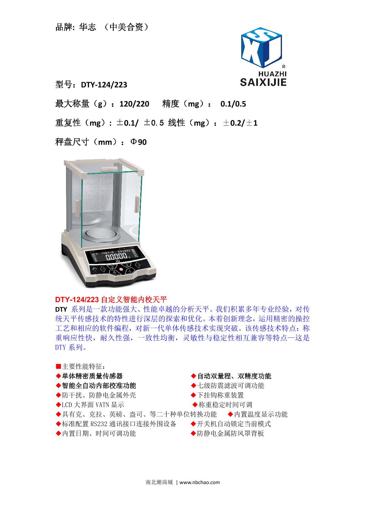 HuaZhi DTY-124/223 Electronic Balance brochure