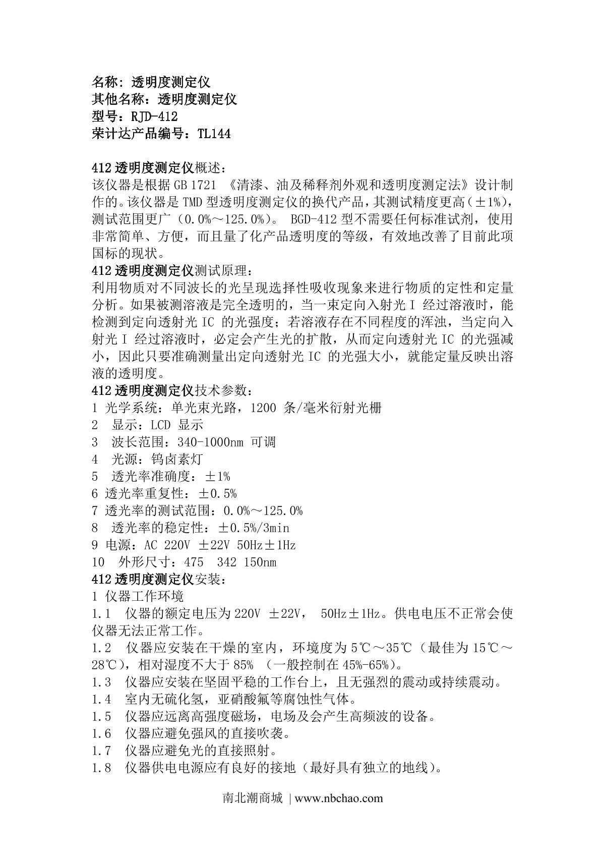 - 10RongJiDa RJD-412 Transparency meter Manual