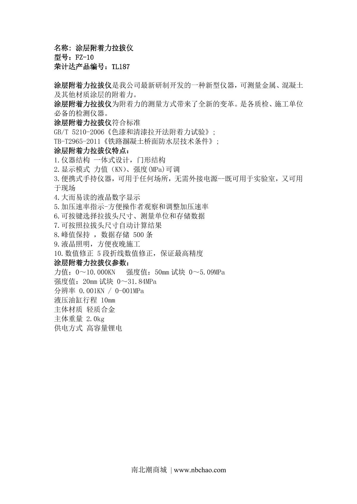 RongJiDa FZ-10 Coating adhesion puller brochure