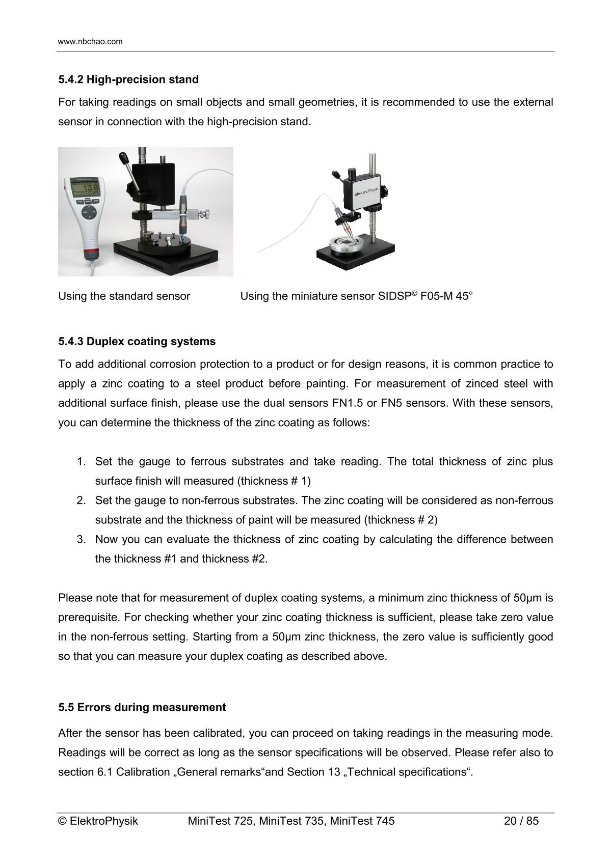 - 4ElektroPhysik MiniTest 735 F1.5 Coating Thickness Gauge Manual