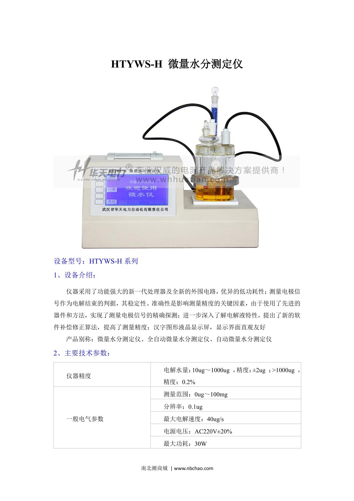 HuaTianDianLi HTYWS-H Insulating oil Moisture meter brochure