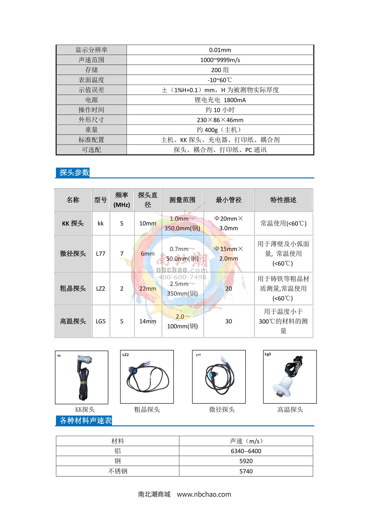 Leeb321 Ultrasonic Thickness Gauge Resolution 0.1mm Sound Speed Range 1000~9999m/s1.0~250.0mm5MHzSplit probe (L51 probe)SE -