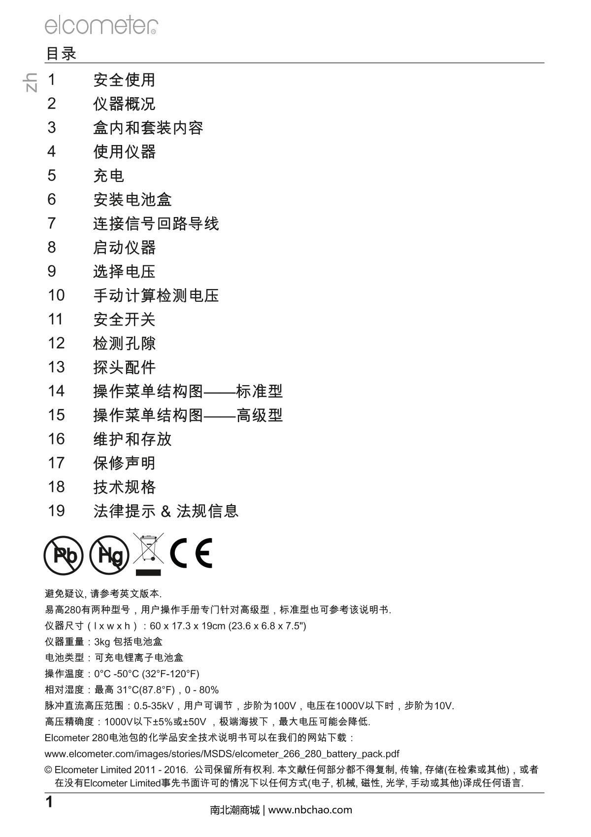 - 8Elcometer D280-T---- Pulse DC Holiday Detector Manual