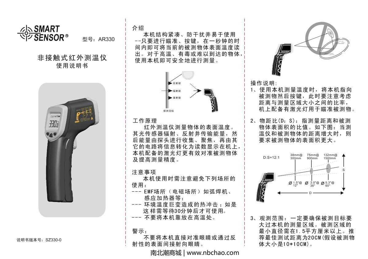 SMART SENSOR AR330 Infrared Thermometer Manual,OI