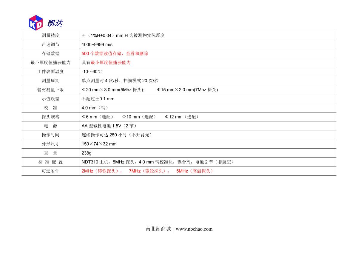 KairDa NDT310 Ultrasonic Thickness Gauge brochure