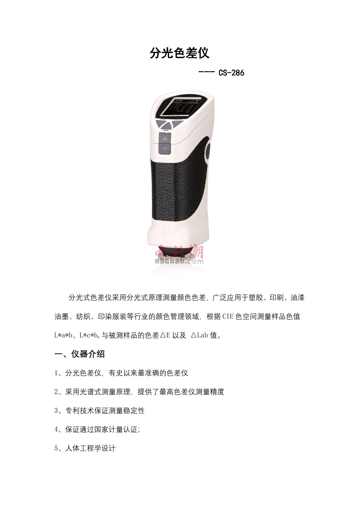CHNSpec CS-286 Spectroscopic Colorimeter brochure