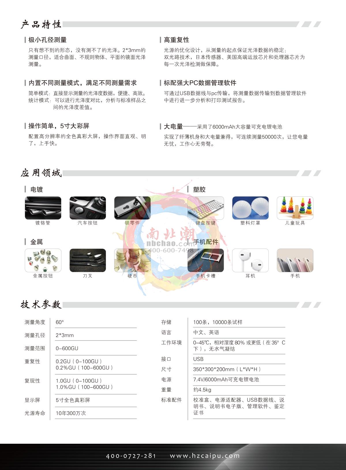 CHNSpec CS-3000S Desktop small hole Glossmeter brochure