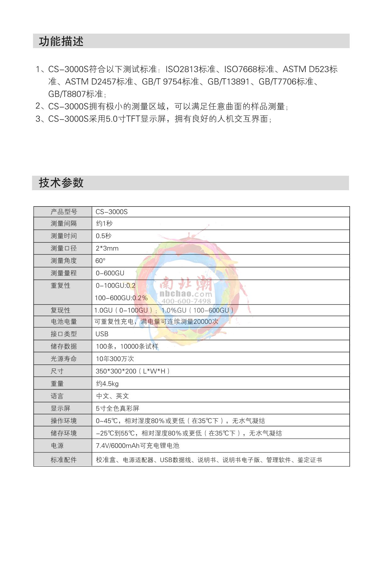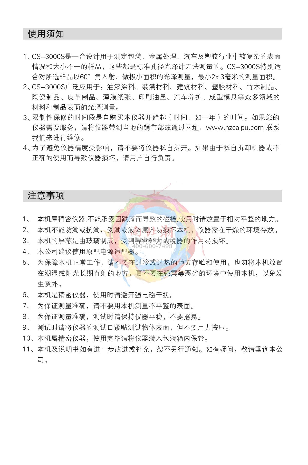 CHNSpec CS-3000S Desktop small hole Glossmeter Manual,OI