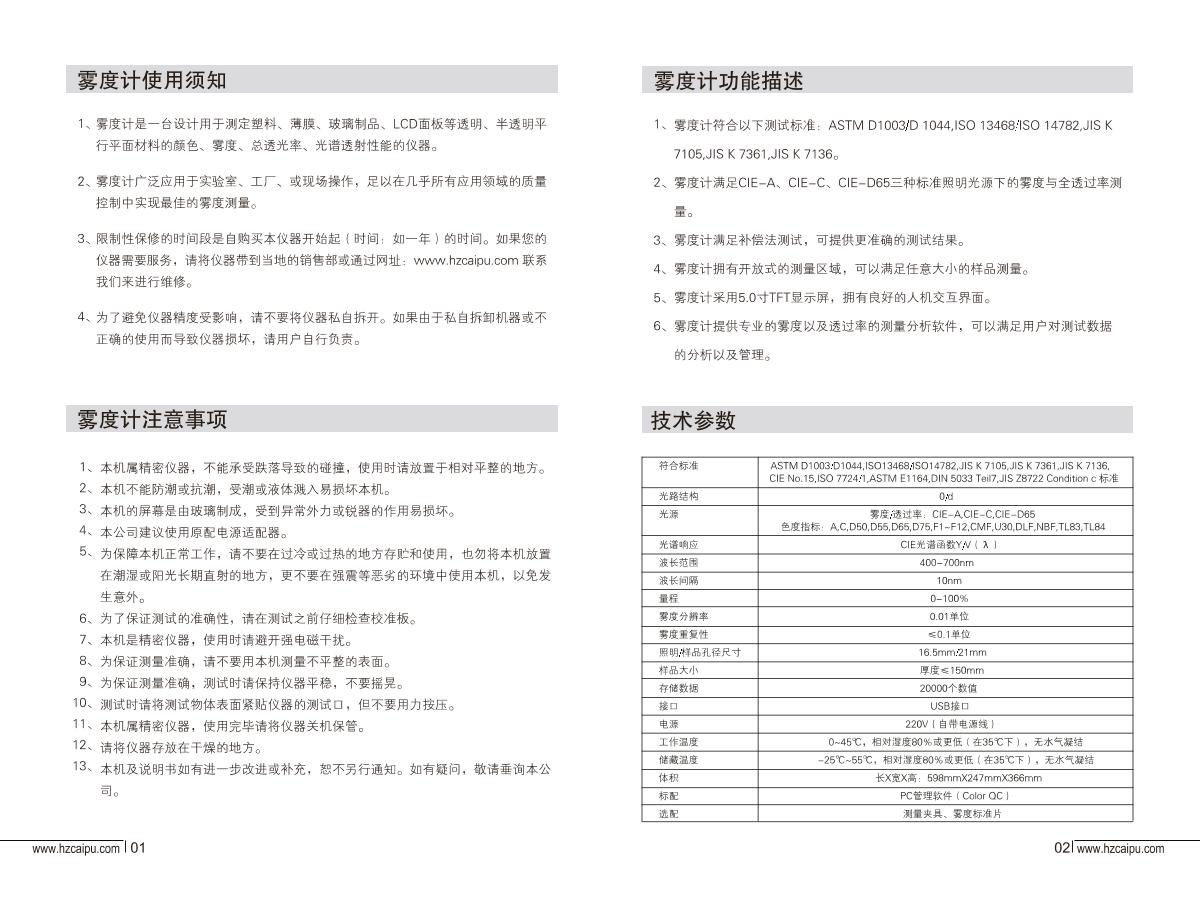 - 43NH YH1200(Φ20mm) haze meter Manual