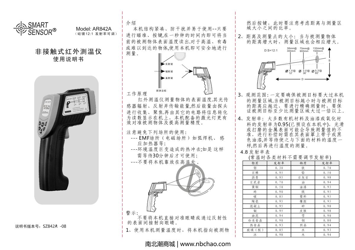 - 8SMART SENSOR AS842A Infrared Thermometer Manual