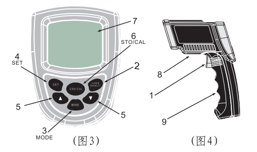 (2) Laser spot and backlight switch (when the backlight is turned on, the backlight will be turned off with a delay of 7 seconds when the button is pressed). LCD prompts laser point and backlight switch status